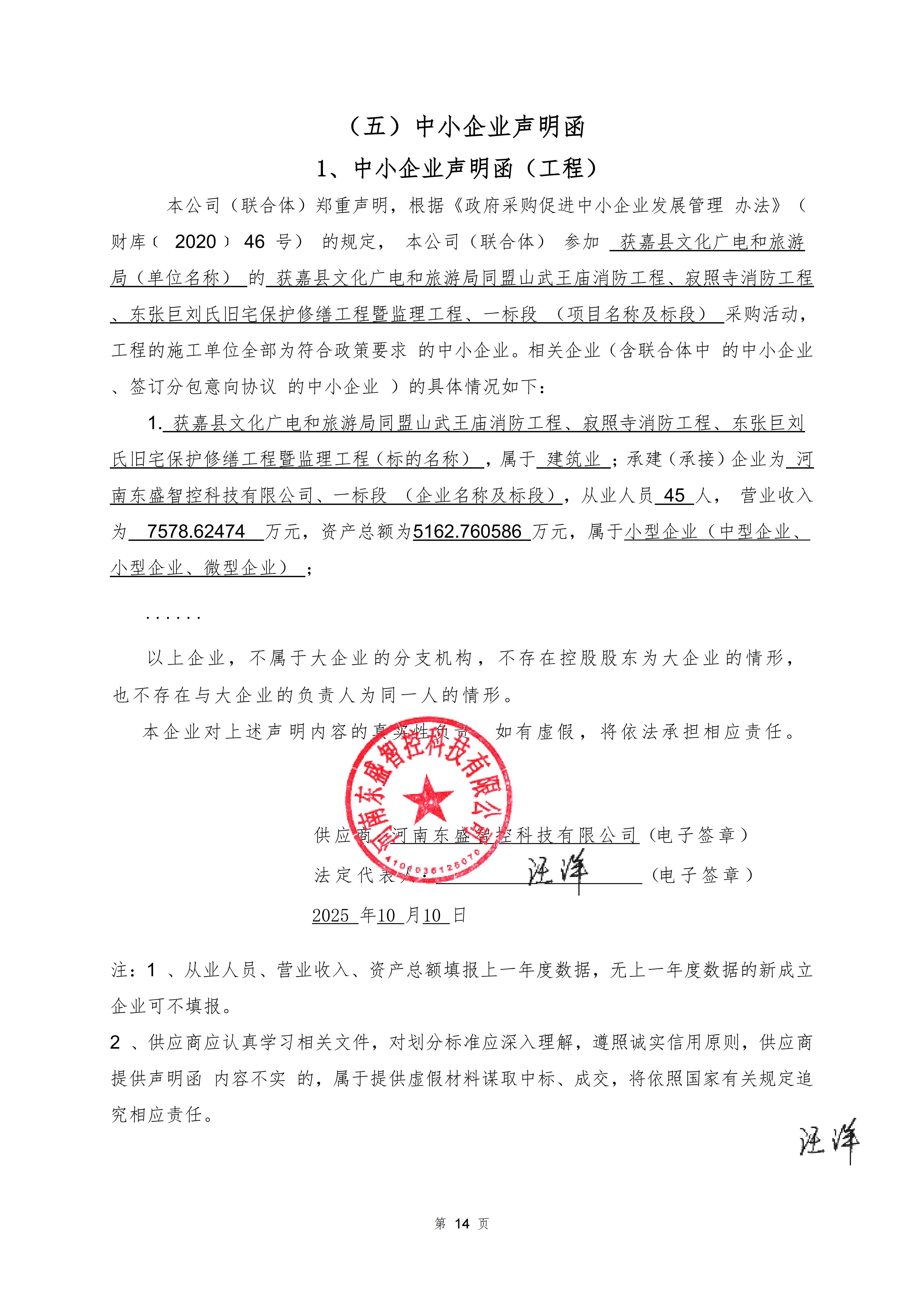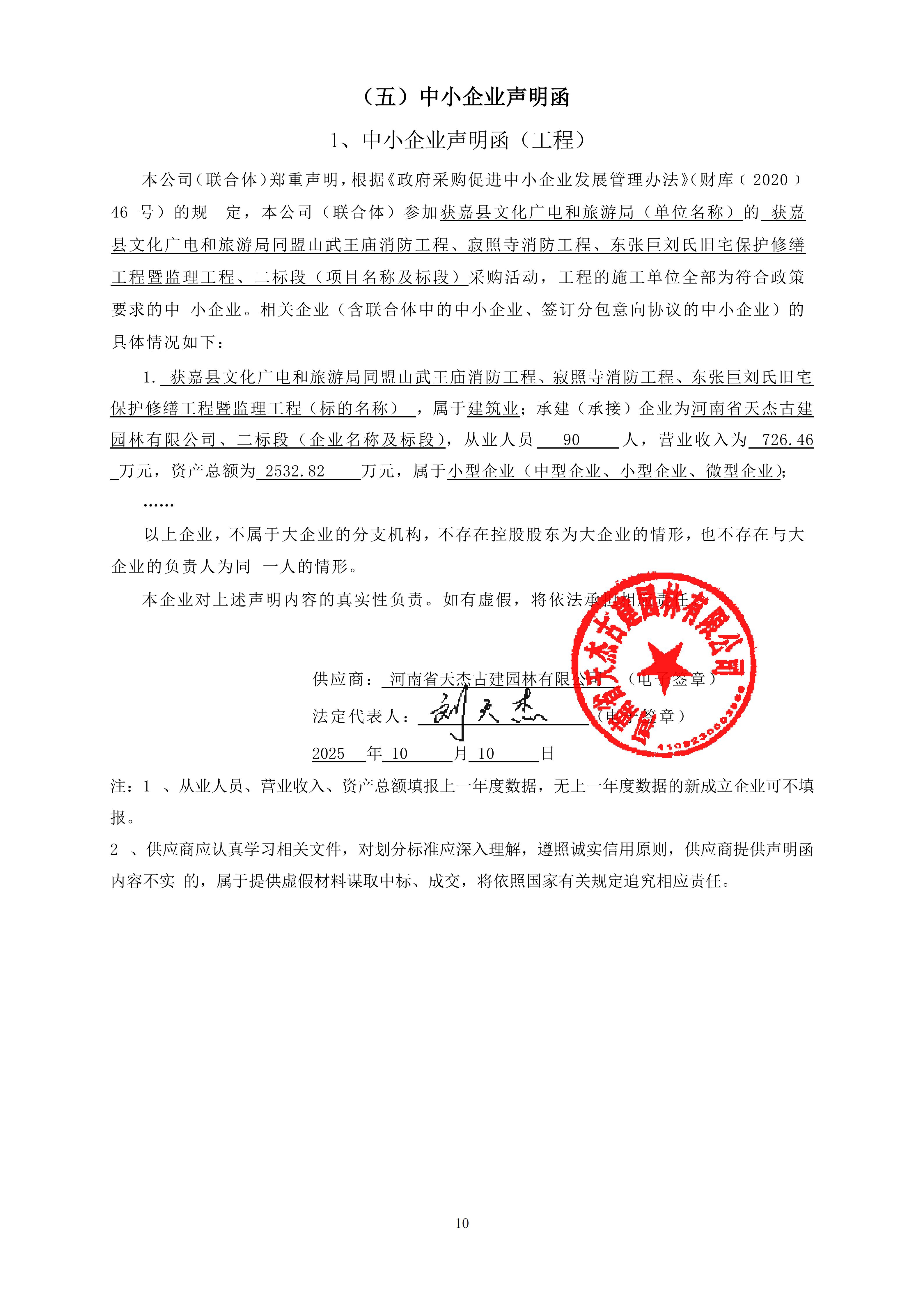 获嘉县文化广电和旅游局同盟山武王庙消防工程、寂照寺消防工程、东张巨刘氏旧宅保护修缮工程暨监理工程项目-中标公告