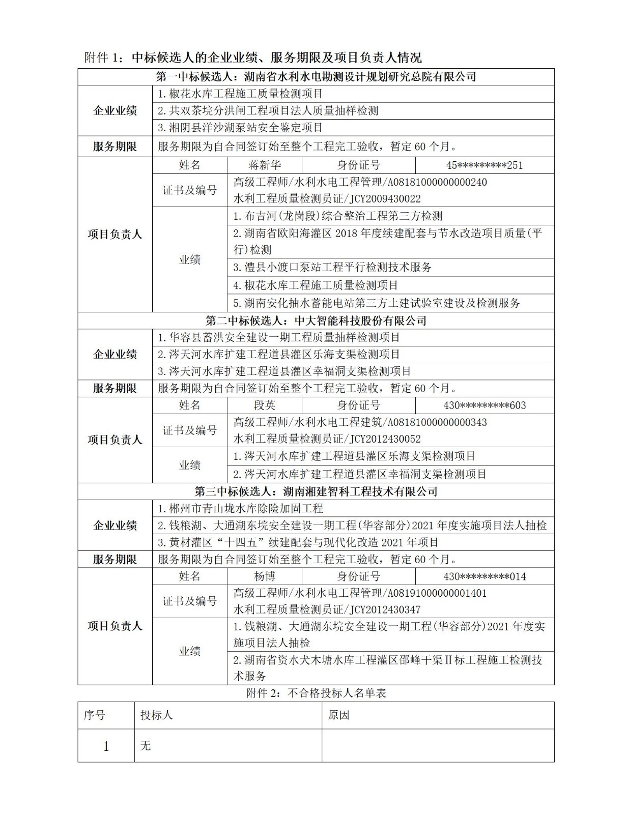 ******有限公司对资水益阳至芦林******委员会经过认真、细致的评审,推荐的中标候选人公示如下: