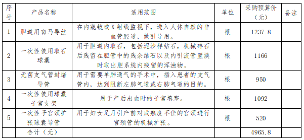 一、项目名称:******医院胆道用斑马导丝等耗材采购项目