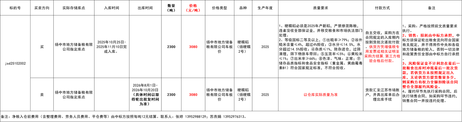 2025年产粳糯稻(扬粳糯2号)2300吨(指定库指定仓),共1个标段。(详见交易清单)