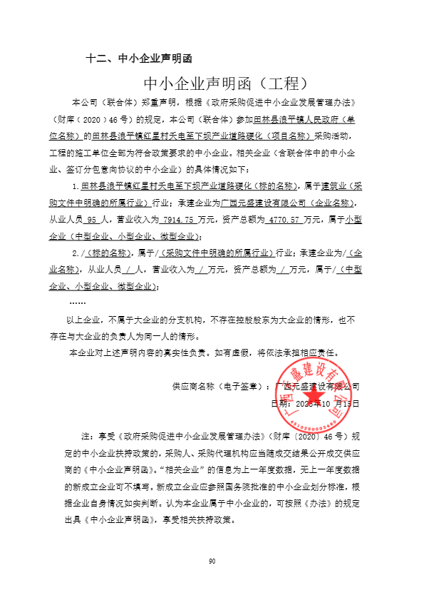 | 1 | 田林县浪平镇红星村夭电至下坝产业道路硬化 | 田林县浪平镇红星村夭电至下坝产业道路硬化 | 施工图纸包括的所有工程(详见施工图纸及工程量清单) | 90日历天 | 李 俊 | 桂******1950 |
